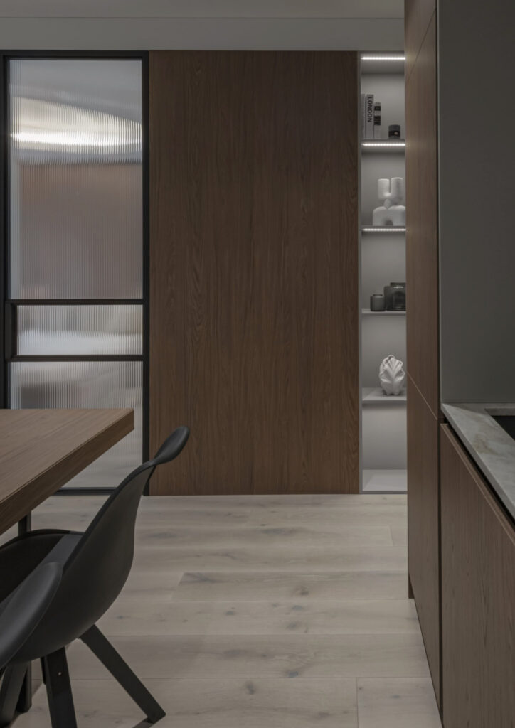 In this interior, the main feature is oak flooring laid in a running bond pattern. The Ivory (E-2410) color combined with Original grade gives the floors both naturalness and expressiveness, while subtle knot patterns add vitality and character.