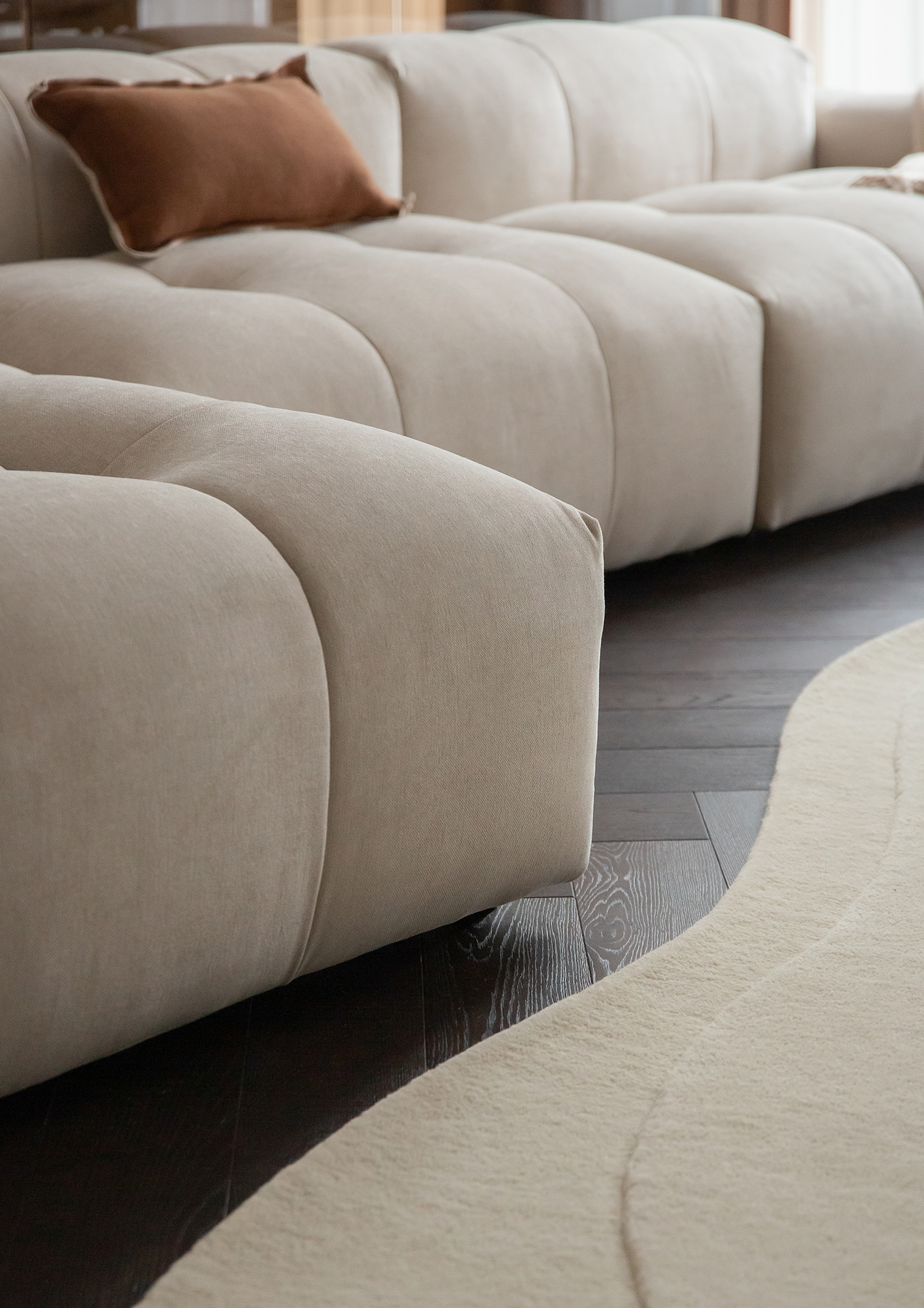 The chosen Chiana (T-2895) colour adds warmth and a sense of calm elegance. Its deep, natural tone blends effortlessly with light surfaces, soft furnishings and architectural details, allowing the space to feel both inviting and refined.