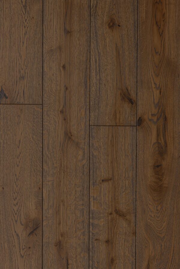 Rustic grade wood flooring emphasizes the raw, unrefined beauty of natural wood, giving a highly textured and dramatic appearance. Rustic grade flooring is perfect for those who love a rugged, natural look. These boards have the most character and visual interest and feature beautiful wood grain with colour variations, unlimited medullary rays, knots and fillers. There is no sapwood present. Minor natural microcracks in the wood, slight chipping, or small dents and indentations in the filler may be present.