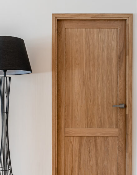 Our solid oak interior doors are manufactured to custom measurements. They are treated with natural oil finishes from the German brand Saicos. You can choose from a variety of colour options. The door includes the following components and hardware: